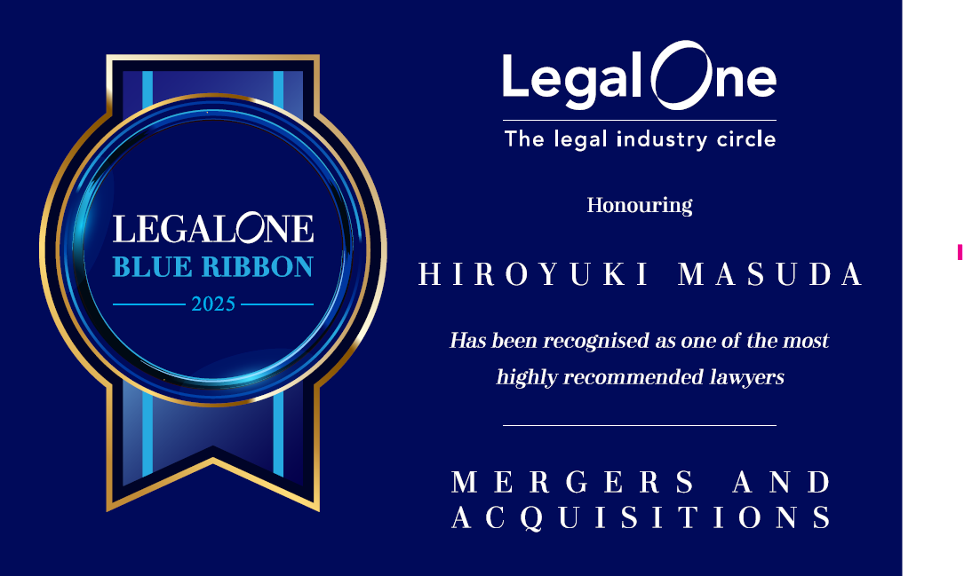 当事務所の増田 浩之弁護士がLegalOneで高く評価され、LegalOne Blue Ribbon 15: Mergers and Acquisitions (Southeast Asia 2025)を受賞しました。